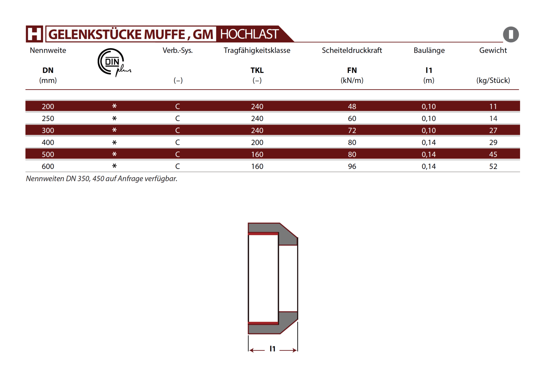 Gelenkstücke (Muffe) GM DN 150 – 700 Hochlast