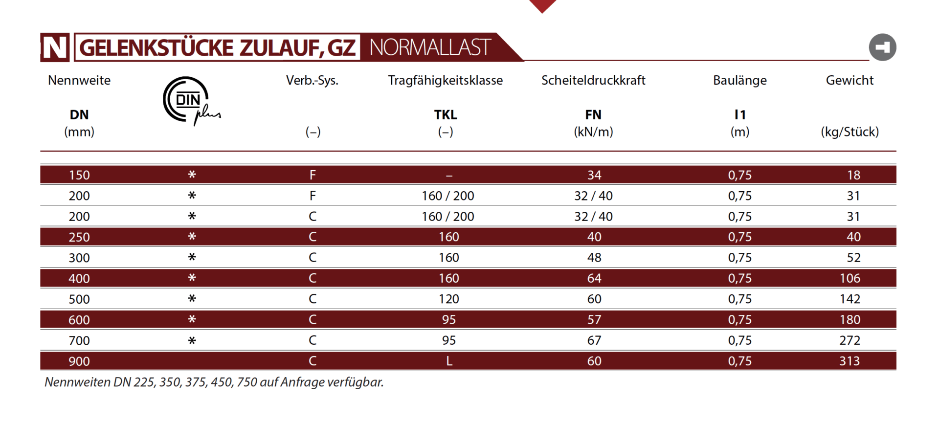 Gelenkstücke (Zulauf) GZ DN 150 – 900 Normallast