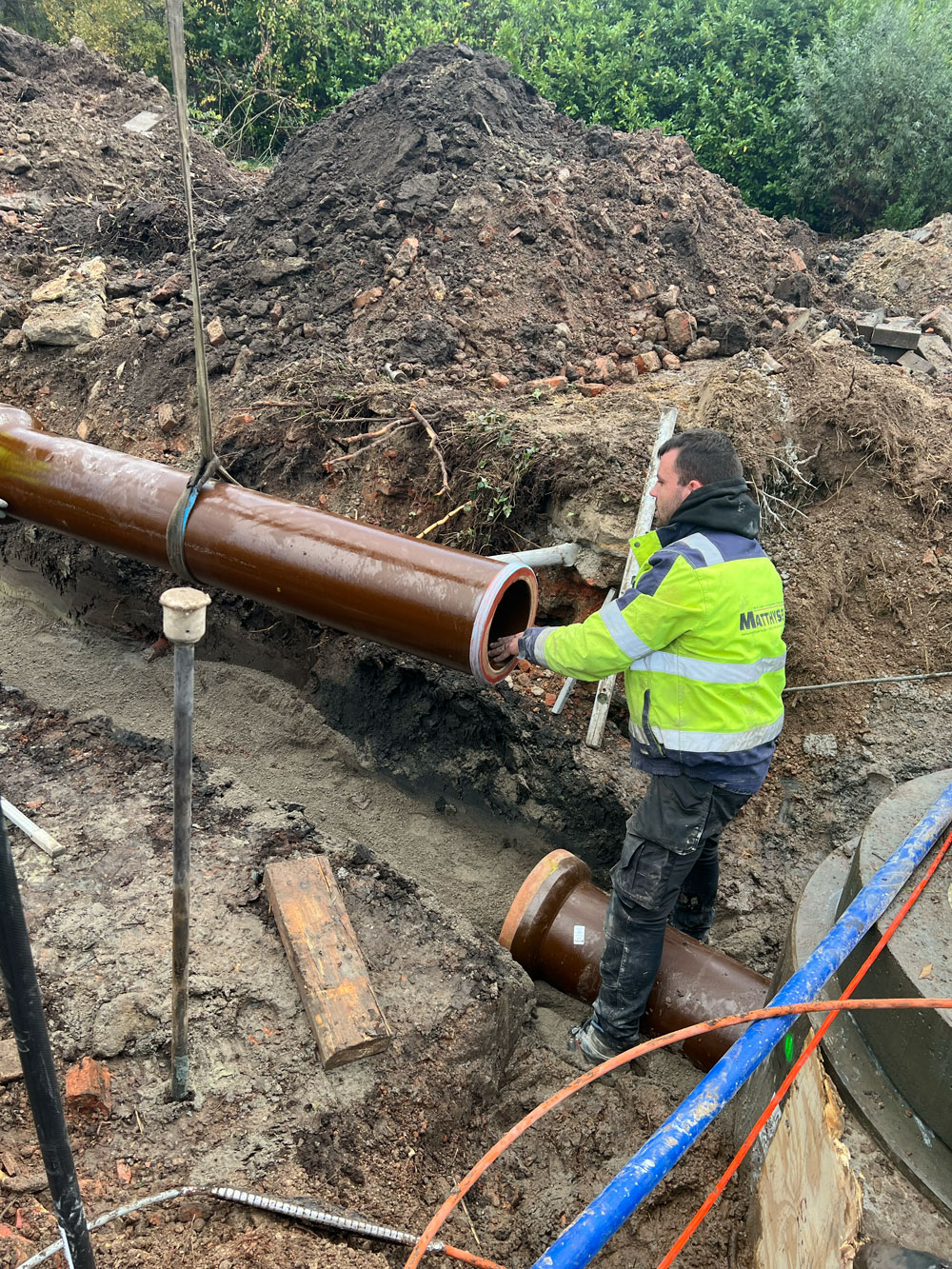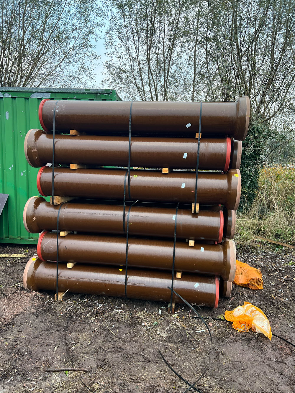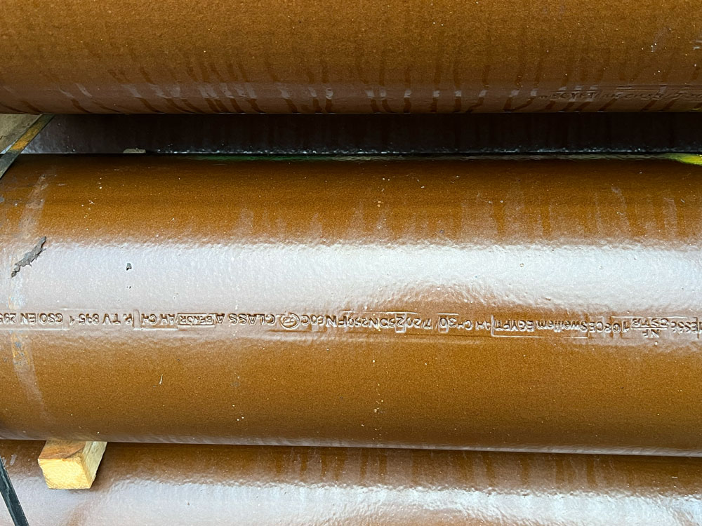Die gelieferten Steinzeugrohre stammen aus der Produktion der Sweillem Vitrified Clay Pipes Co. und sind nach DIN EN 295 geprüft sowie mit dem DINplus Qualitätssiegel ausgezeichnet. Zusätzlich verfügen sie über die Cradle to Cradle® Bronze-Zertifizierung, die ihre ressourcenschonende Herstellung und volle Rezyklierbarkeit bestätigt.